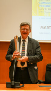 A seguire, il Premio Paoline 2025 è stato conferito a Paolo Ruffini, prefetto del Dicastero per la Comunicazione, «per il suo stile inclusivo, dialogante, fedele al Vangelo e capace di leggere i segni dei tempi». Accogliendo il premio, consegnato da suor Teresa Braccio e suor Paola Fosson, Ruffini ha dialogato con gli studenti, riflettendo sul ruolo dei social media, sulla riservatezza del Conclave e sull’importanza della responsabilità giornalistica.